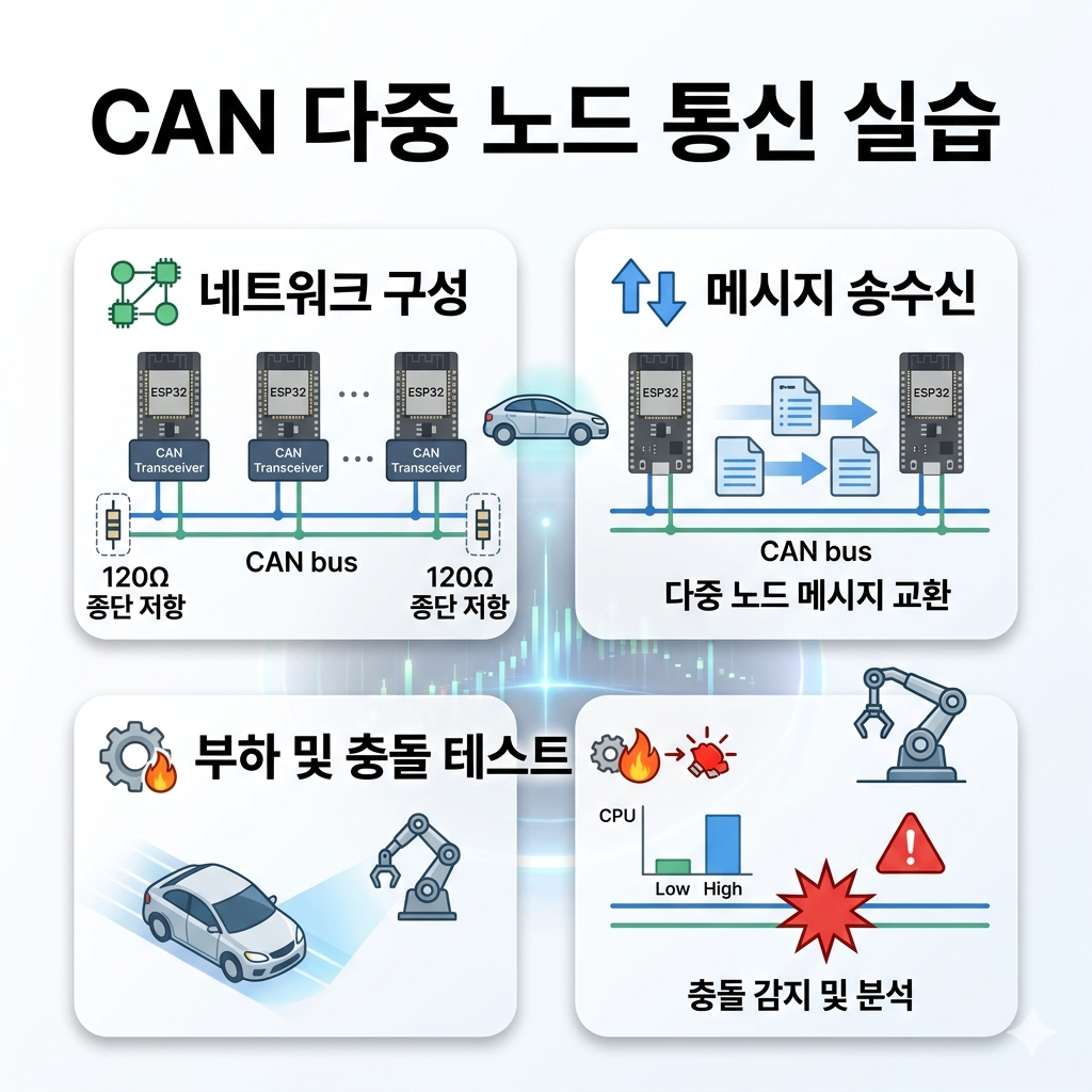 - 다중 노드 환경에서 CAN 충돌 테스트 및 자동 재전송 메커니즘 확인